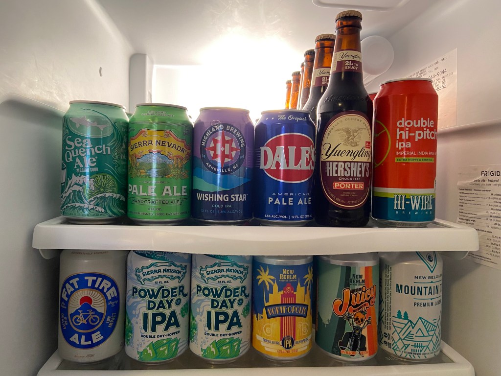 Today’s beer: Mountain Time from New Belgium Brewing Company in Asheville and Double Hi-Pitch from HiWire Brewing Company in Asheville