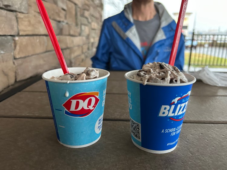 Today’s ice cream: DQ Blizzards (J) Choco Brownie Extreme and (A) Oreo Fudge Brownie