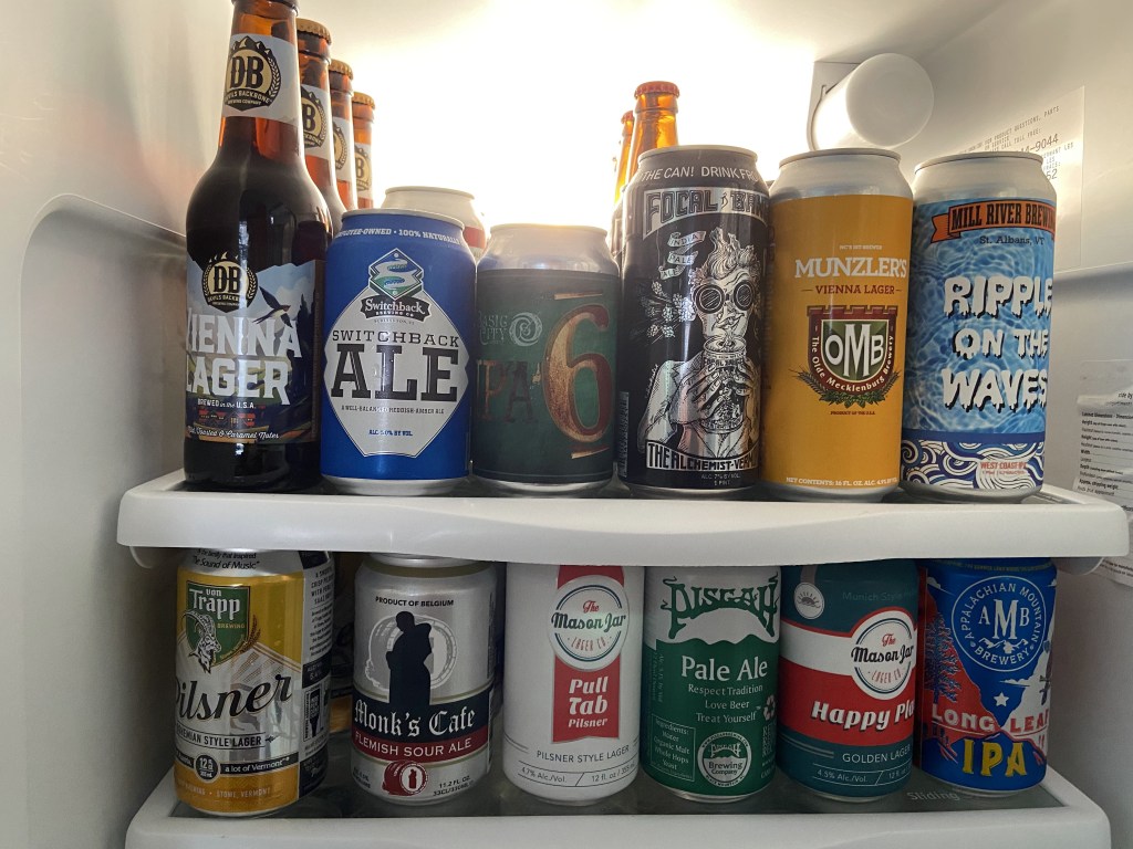 Today’s beer: Scrag Mountain Pils from Lawson’s Finest Liquids in Waitsfield, VT and Pisgah Pale Ale from Pisgah Brewing Company in Black Mountain, NC