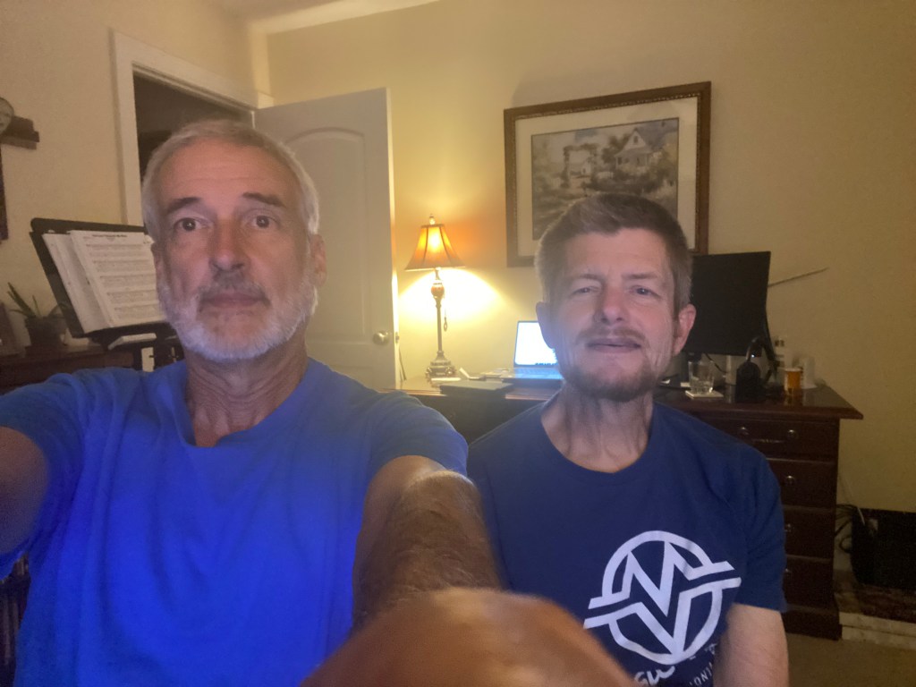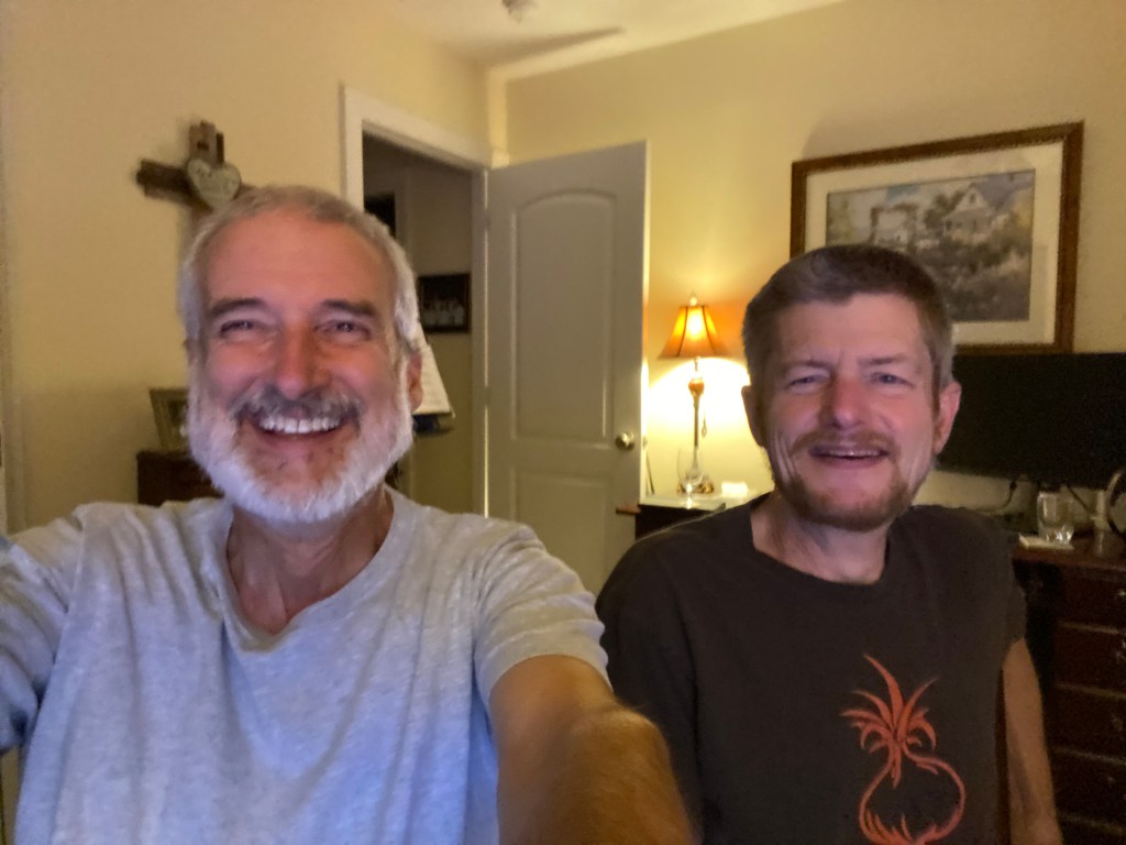 - Andy and I went for a walk before dinner.