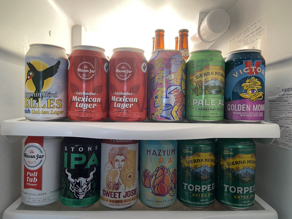 Today’s beer: Luchador from Mason Jar Lager Company in Fuquay-Varina, Brotherly Love from Victory Brewing Company in Downingtown, PA and Torpedo from Sierra Nevada Brewing Company in Mills River