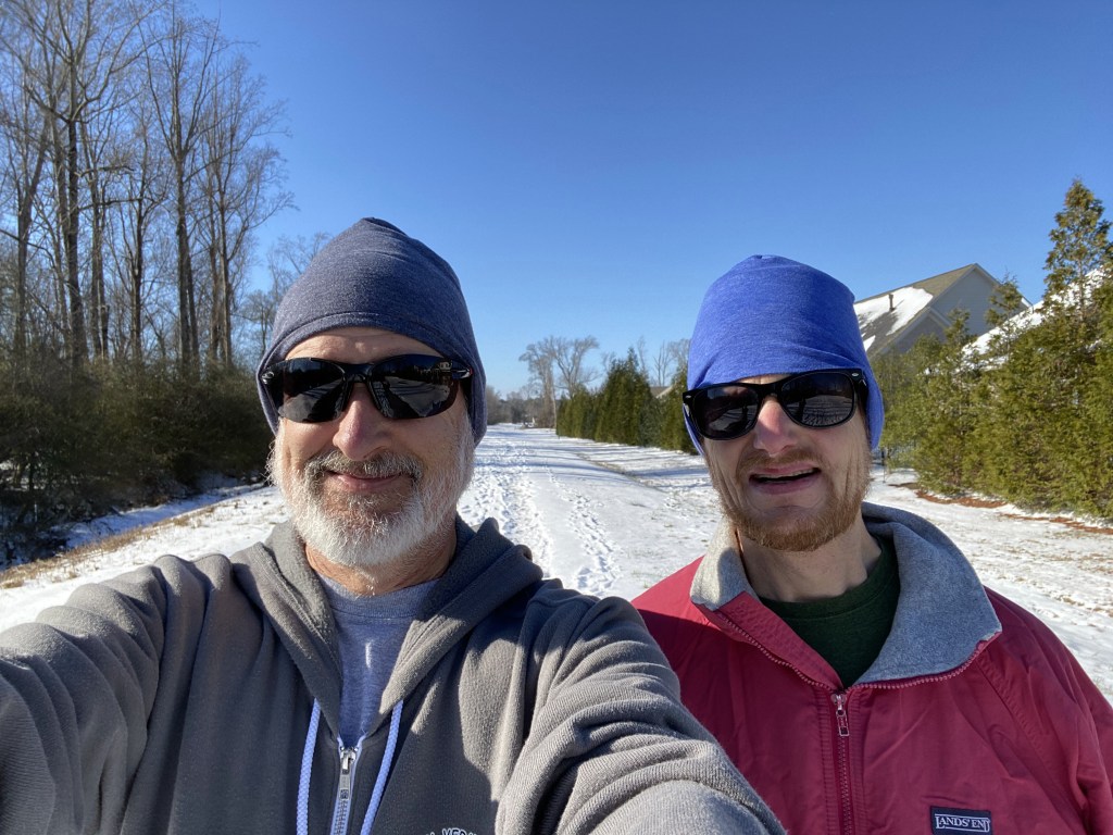 - Andy and I went for a walk before dinner.