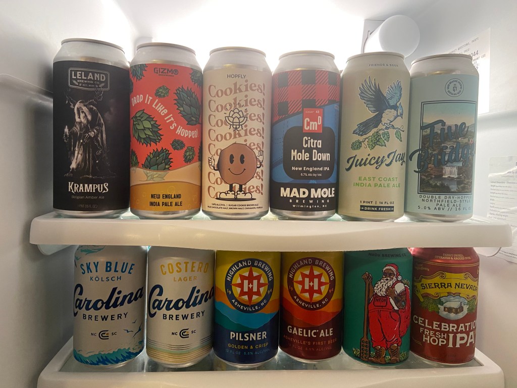 Today’s beer: Sky Blue from Carolina Brewery in Pittsboro and Drop It Like It’s Hopped from Gizmo Brew Works in Raleigh